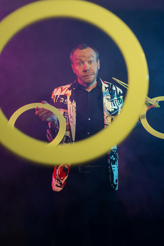 A clear, flat performance area is required. Indoor or outdoor spaces are suitable. A space approximately 6m x 6m is ideal for groups up to 30, with larger spaces recommended for bigger groups. No power, staging, or rigging is required. A headset microphone can be helpful for larger groups but is not essential.