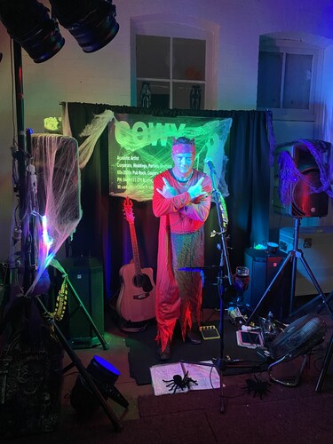 30mins for quick setup (PA, speakers & cables). 60min for full setup, including backdrop, lighting & full sound equipment. The venue will need to supply power to the performer for his equipment, all sound & lighting equipment provided by the entertainer. Media player input (iPod/mp3) available for external devices.