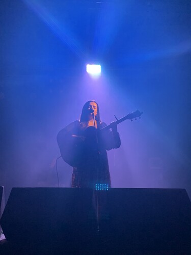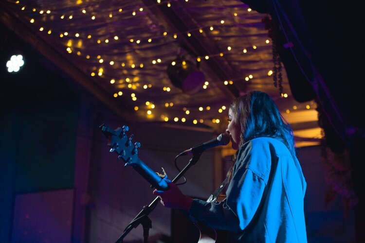 A polished acoustic performance featuring original indie-pop songs and select covers, delivered on guitar and ukulele with a warm, professional stage presence and strong audience connection.