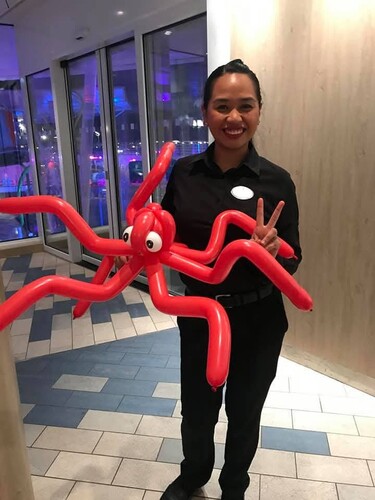 Creative and energetic Balloon Twister with 9 years of professional experience delivering high-quality balloon art and interactive entertainment for children of all ages. Former Youth Staff member with Royal Caribbean Cruise Line, bringing world-class entertainment standards to every event. Highly skilled in engaging large and small groups, creating custom balloon designs, and fostering a fun, safe, and inclusive environment. Known for exceptional customer service, adaptability, and the ability to connect with children from diverse cultural backgrounds.