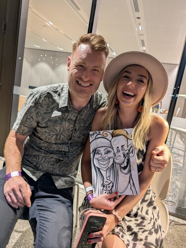 A popular Caricaturist! - SketchMyEvent Artist creates fun and unique Caricature art of people and pets for all events: Weddings, Birthday Parties, Hen's Party, Corporate events, Fundraising, and Christmas parties. I take just 5 minutes per person to capture their likeness. I playfully emphasise the features of men while making the ladies look fabulous, like the Kardashians, free Botoxing. I offer super-fast mini portraits on A5 paper that take only 3- 5 minutes to complete. I bring fun entertainment by sketching on A4 or A3-sized paper, and I still have customers raving about my unique Caricature Art.